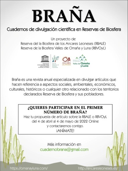 Braña es una revista anual que se especializa en la difusión de artículos sobre aspectos sociales, económicos, culturales e históricos relacionados con los territorios declarados Reservas de la Biosfera y sus pobladores. Los contenidos se publican en español y está abierta a la participación de autores e investigadores interesados.