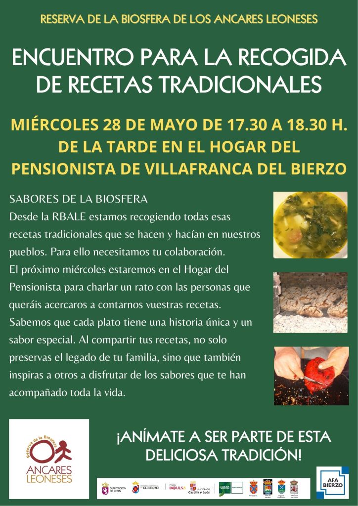 Involucrar a la población en la recopilación de las recetas a través de un proceso abierto en el que ya se puede colaborar llamando al 987 564907, a través de info@ancaresleoneses.es o rellenando el siguiente formulario online: FORMULARIO SABORES DE LA BIOSFERA