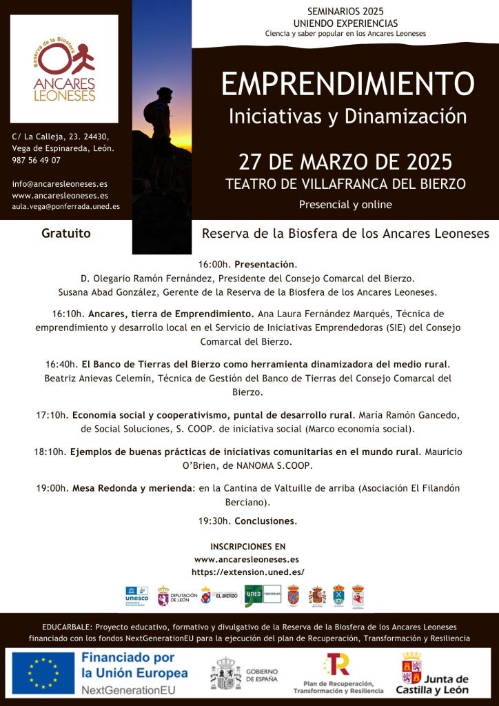La Reserva de la Biosfera de los Ancares Leoneses organiza para la próxima semana los dos últimos Seminarios Uniendo Experiencias del mes de marzo de 2025, que se encuadran en el marco del Proyecto Educarbale. En esta ocasión serán el Emprendimiento y Participación ciudadana los dos encuentros que se celebrarán a continuación.